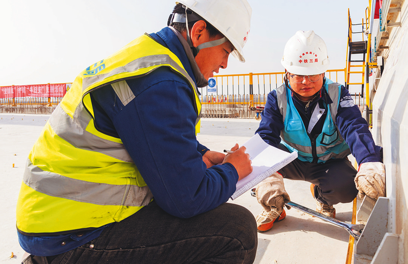??近日,中鐵三局線橋公司石雄項目部開展“‘黨旗紅’護航‘冬日安’”主題活動,組織開展“黨員帶頭班前講話”“黨員身邊無違章、無事故、無次品”“帶頭查隱患”等活動,引導黨員爭當安全生產“領頭雁”。圖為排查安全隱患。?劉家漢 李賀強 攝影報道