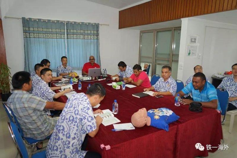 Fijian Red Cross carried out training for emergency rescue, "Care for Life and Health", in the project department of FHL building constructed by China Railway First Group on March 16th, 2019.